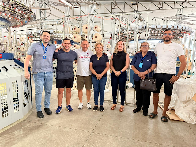 A prefeita do município de Uiraúna, Leninha Romão, acompanhada da secretária de Empreendedorismo e Desenvolvimento, Lidiana Alencar, e de representantes do Sebrae Sousa-PB, esteve visitando uma fábrica têxtil em Alto Santo, na microrregião do Baixo Jaguaribe-CE.
